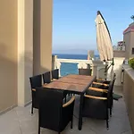 Luxurious And Panoramic Apartments At The Beach In La Mer Complex bieden gasten een balkon, een terras en een zitruimte voorzien van airconditioning en ingericht met een bank. Daarnaast kunnen gasten genieten van kabeltelevisie met on-demand films en TV met satellietzenders, en veiligheidsvoorzieningen zoals een elektronische sleutelkaart. Er worden bedden met veren kussens, dikke donzen kussens en donzen/veren kussens verstrekt. Een badkamer met een bidet, een inloopdouche en een apart toilet wordt samen met een haardroger en badlakens verstrekt.
